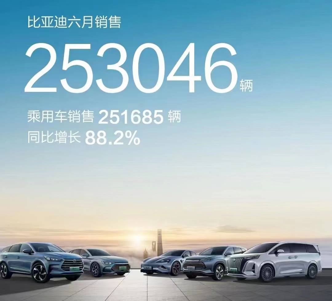 比亚迪6月销量算计25.3046万辆。上半年销量算计125.5637万辆,同比增加94.25%。新能源轿车6月算计销量253046辆,本年累计销量125.5637万辆,同比增加95.78%。海外销量方面,6月海外销量新能源乘用车算计10536辆。公司2023年6月新能源轿车动力电池及储能电池装机总量约为11.816GWh,2023年累计装机总量约为60.250GWh。