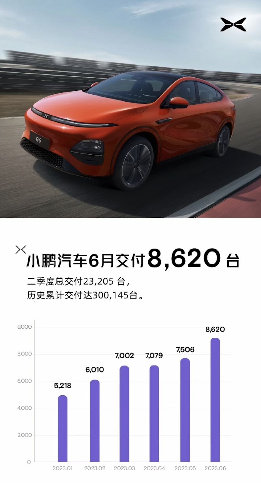 小鹏轿车开端有了反击的气势。小鹏轿车6月共交给8620辆,环比增加15%,完成了2023年上半年销量六连涨;二季度新车交给总量达23205辆,前史累计交给300145辆。在小鹏G6的上市发布会上公司关于这款新车信心十足,无论是从订单仍是终究笑两下,信任这款车会让小鹏重回巅峰状态。未来,小鹏将推出MPV车型X9,小鹏轿车或将用这款产品翻开“年青态”MPV商场,估计将在第四季度推出。