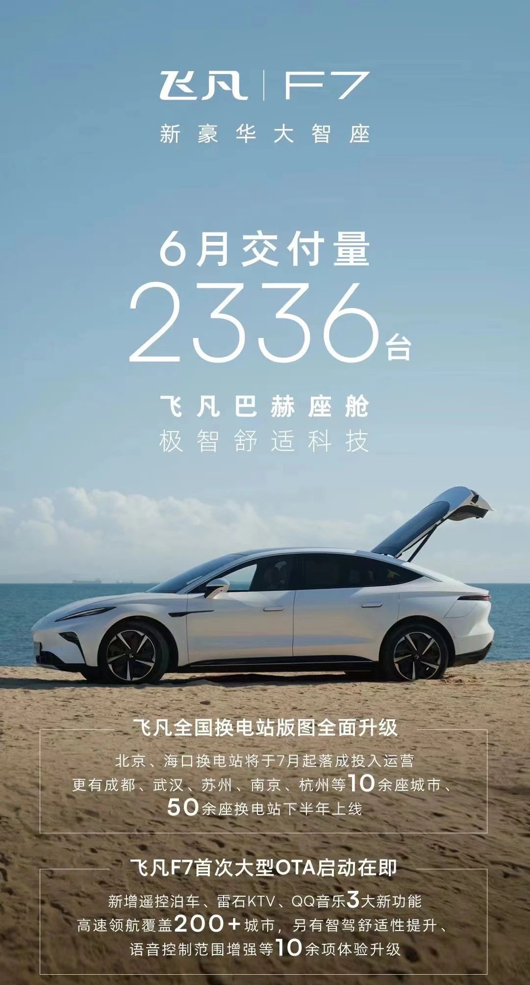 飞凡轿车正式发布6月F7销量成果,算计交给2336台。“新奢华大智座”飞凡F7凭仗多项职业创始科技以及飞凡巴赫座舱的极智舒适体会,博得了消费商场的认可和用户的好评,被誉为“30万内最舒适的轿车”,推进飞凡轿车销量安稳攀升。除了新零售服务体系的继续完善,飞凡轿车的换电形式也将开端发力,全国换电站地图全面晋级。其他,“新奢华大智座”飞凡F7也行将迎来初次大型OTA晋级,高速领航掩盖城市将到达200座,并新增遥控泊车、雷石KTV、QQ音乐三大新功用,一起还带来智驾舒适性提高、语音操控规模增强等十余项体会晋级。